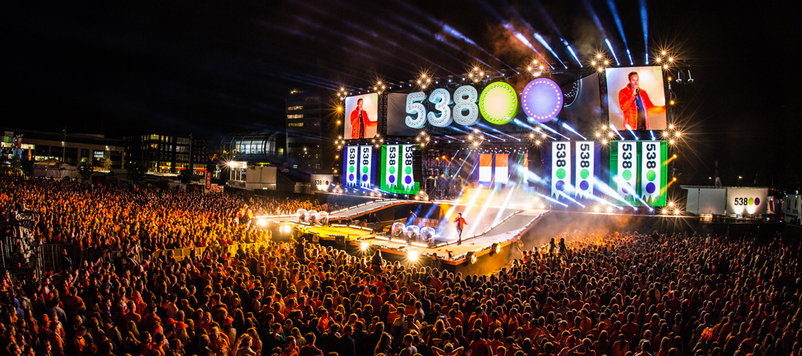 Radio 538 is one of the nation’s biggest commercial radio stations. They organized a 40.000 capacity event in the city of Breda, called ‘538 Koningsdag’. SLAM!FM also is a commercial broadcaster, aimed at young people. Their event was held in the city of Alkmaar. Both events were broadcasted live, both in audio and video.